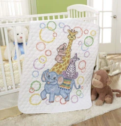 Welcome baby with playful zoo animals celebrating their birth. Counted cross-stitch kit includes white 14-ct. aida cloth, cotton floss and needle. 8 x 10″ (20.3 x 25cm). Made in U.S.A. and imported.