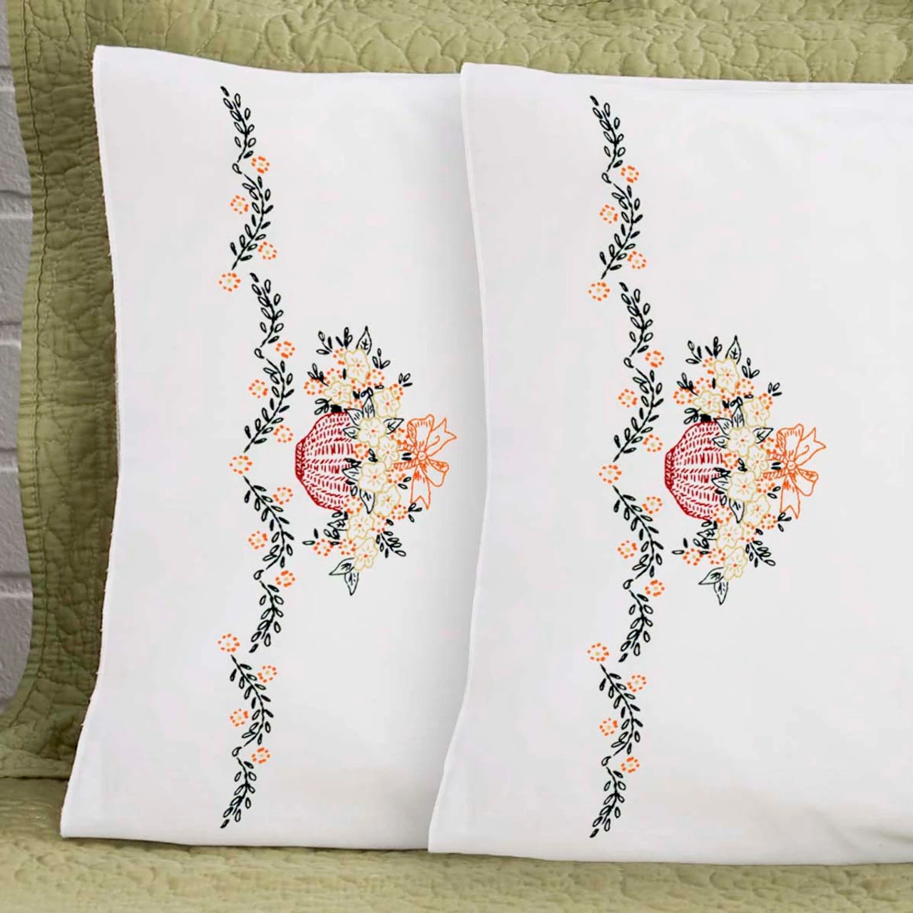 Rest your head on a beautiful arrangement of florals. Preserve the best of the past with the Revival collection, a selection of vintage needlework designs preserved from the archive and re-created for modern stitchers. Stamped for embroidery on white cotton/polyester fabric with a perle edge. Pair includes two 20 × 30″ (51 x 76cm) pillowcases. Imported.