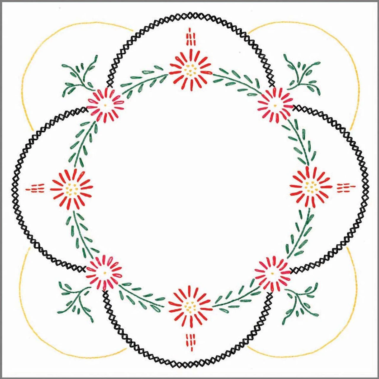 • Quilt blocks are stamped for embroidery on white polyester/cotton fabric.