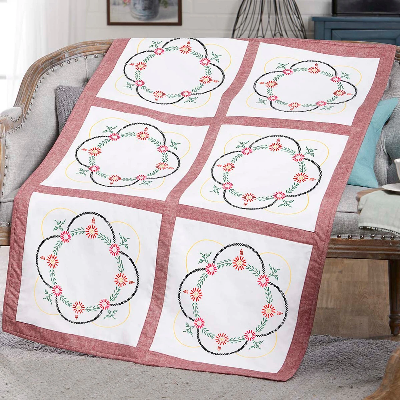 • Set includes quilt blocks and instructions. Floss, needle, and finishing fabric are not included.