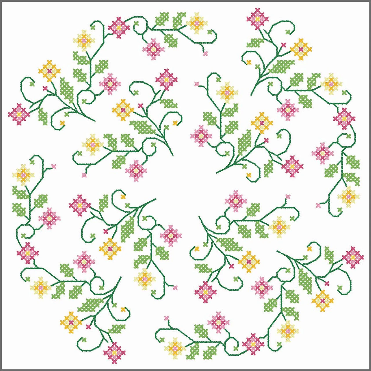 Rest under a field of wildflowers with these blossoming quilt block designs. Stamped for cross-stitch on white premium percale polyester/cotton fabric. Set of six. 18 x 18″ (46 x 46cm). Made in U.S.A.