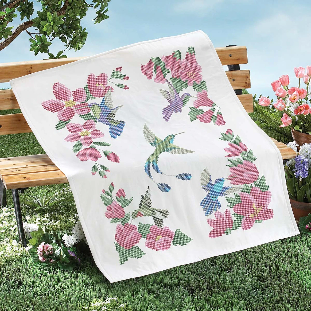 Herrschners Hummingbirds Of The World Lap Quilt Top Stamped Cross-Stitch