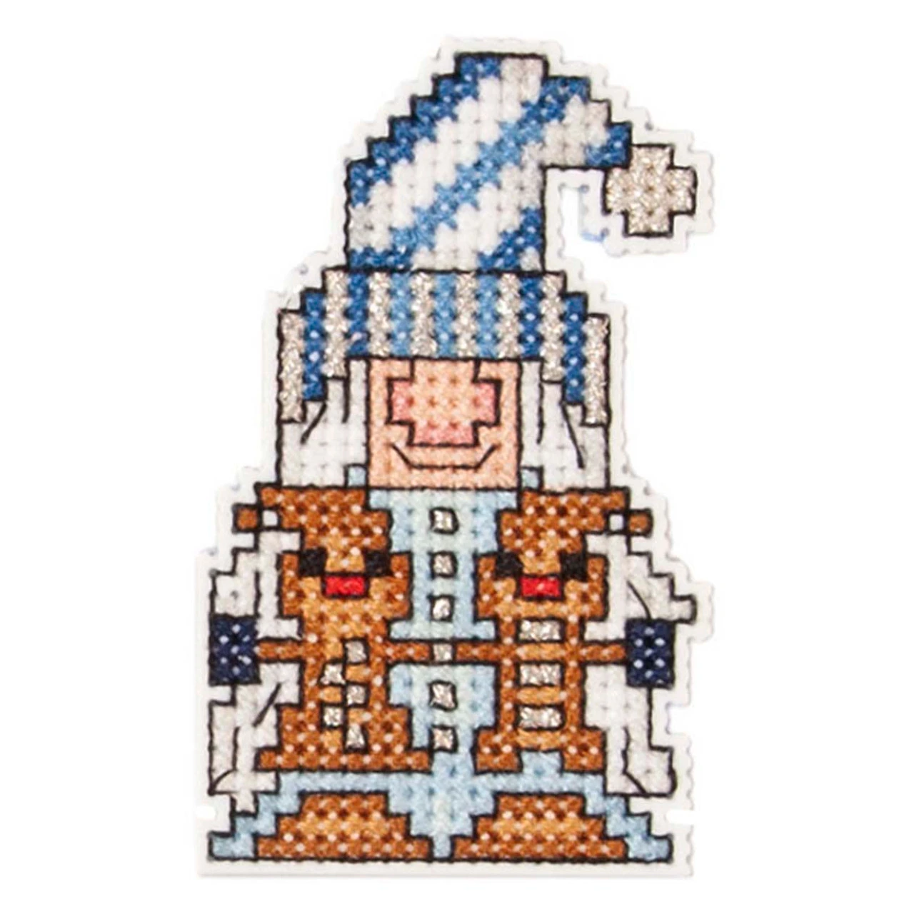 These wintry gnomes are eager to help you decorate! Counted cross-stitch kit includes 14-ct. plastic canvas, cotton and metallic floss, floss organizer, magnets, and needle. Set of eight. Up to 4″ (10.2cm) H. Imported.