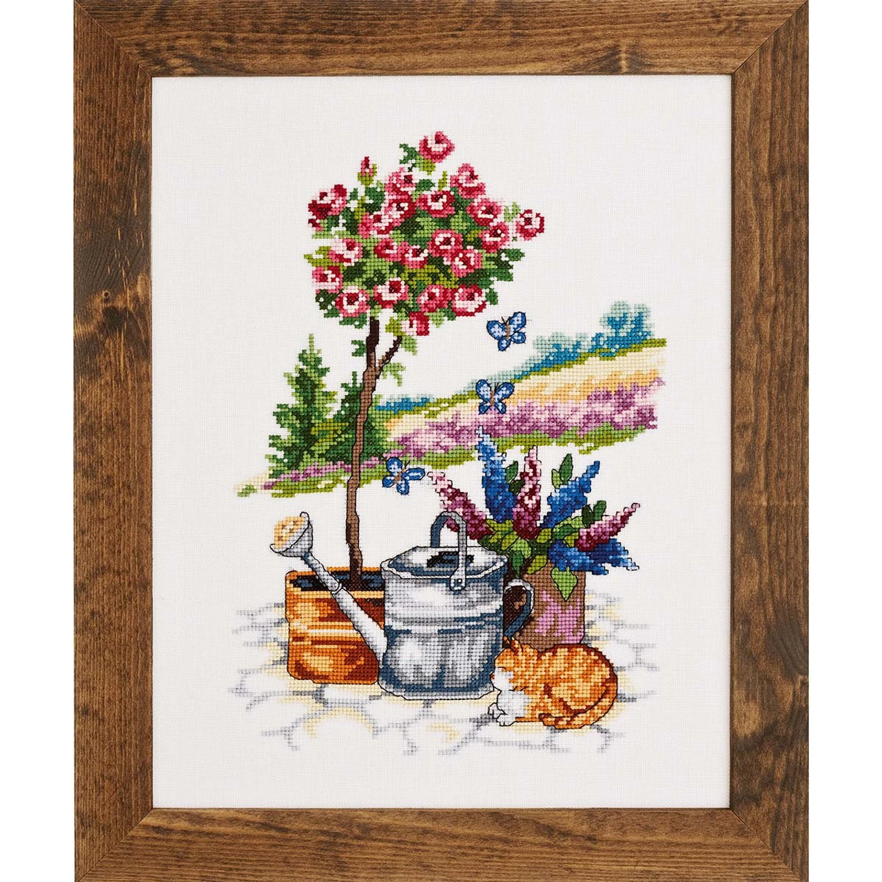 Enjoy a beautiful garden view all season long with this charming springtime scene. Counted cross-stitch kit includes white 14-ct. aida fabric, cotton floss, and needle. 12 x 15″ (30 x 38cm). Imported from Europe.