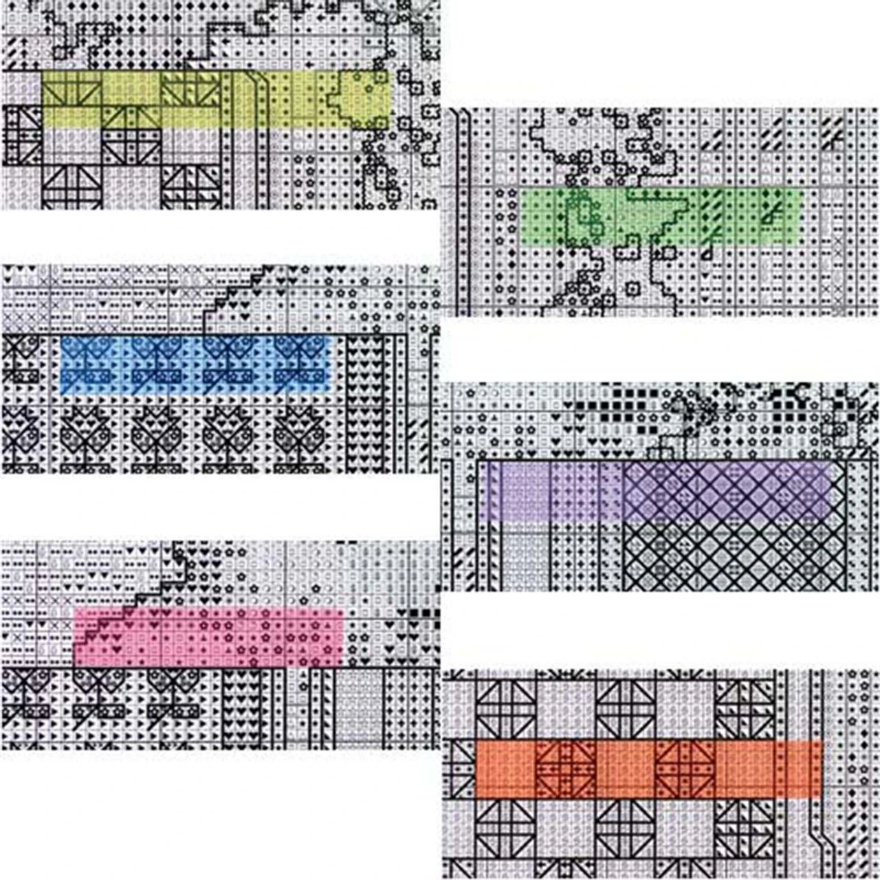 Set of 6. Perfect for keeping your place on your needlework chart, this fun removable tape can be repositioned and reused multiple times. Transparent, writable tape is 1/2″W x 393″L.